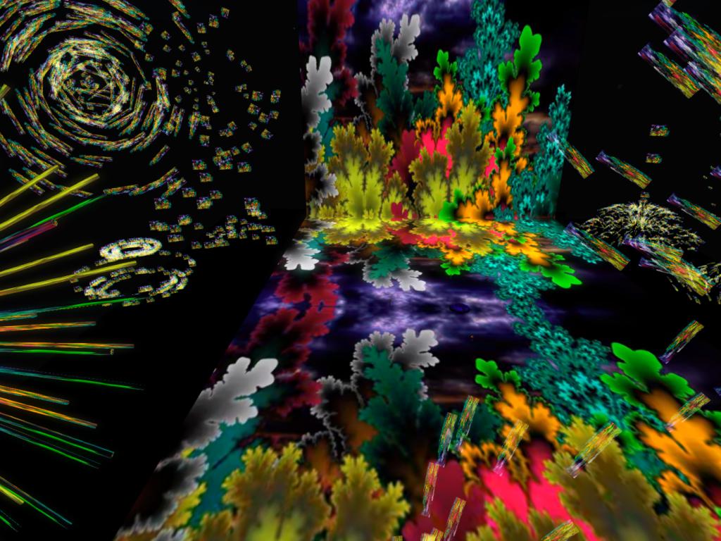 We can load up to 60 different videos including lazer shows, particle shows and some very interesting Russian ones which are floral, delicate, almost luminescent and very beautiful. We also have usual particles, if there is such a thing, and we have created interesting unusual shapes and builds too with textures and scripting .